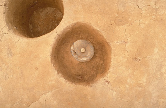 屋外のピットを掘り下げたところ、蓋をした須恵器の壺が埋設されていました。