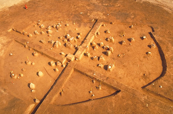 縄文時代早期撚糸文:井草式期の住居跡。現在確認されている旧江南町最古の住居跡です。平面プランは不整の小判形を呈しています。