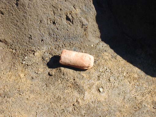 床面直上から出土した支脚。