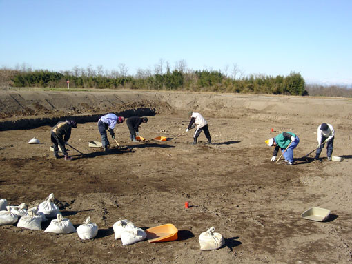 | 新田裏遺跡第3次発掘調査(1/3ページ) 調査地区:熊谷市上新田地内 調査面積:約400u 調査期間:平成16年1月15日〜2月6日 調査機関:江南町遺跡調査会 調査原因:砂利採取 |