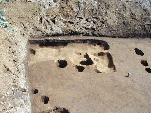 土壙・ピットが重複し、住居の形状が良くわかりませんが一応住居跡です。