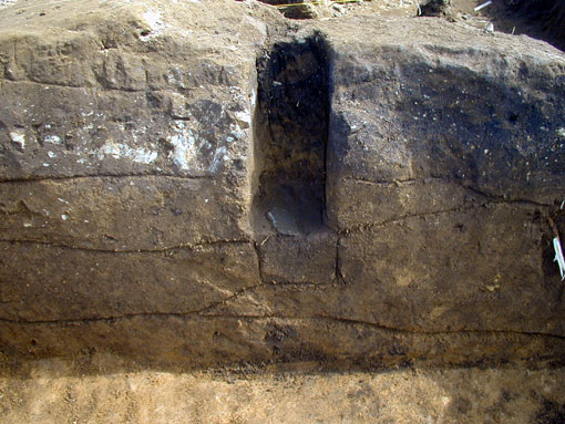第12号古墳の前庭部より出土した、杏葉。ちょっとわかりづらいですが、凝灰岩混じりの黒色土層の下層より出土しています。