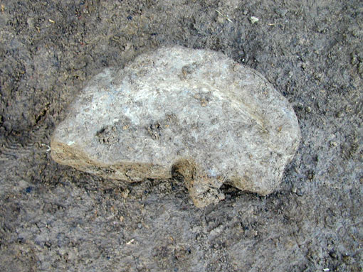 第3号井戸より出土した石臼。ちょうど半分に割れていました。