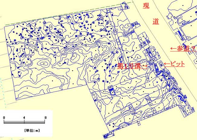道路の東側に写っている調査区は1997年調査の中島遺跡第1次調査地点。