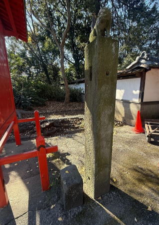 妻沼歓喜院本坊門前に建てられているこの幡立ては、文政10年(1827)に妻沼中町の有志により建てられたものです。支柱の上部に獅子が乗る珍しい形式です。