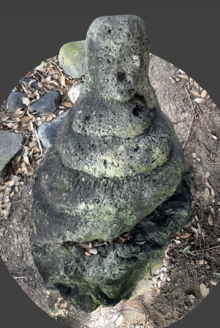 斜めに倒れていますが、蛇がとぐろを巻き、人頭がその上に載る、安山岩製の石造物です。造立年は刻まれていませんが、黒色安山岩製であることから、浅間山噴火の天明期以降のものと推測されます。
