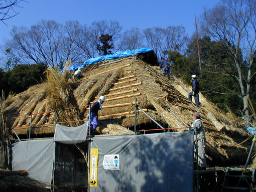 茅葺作業。