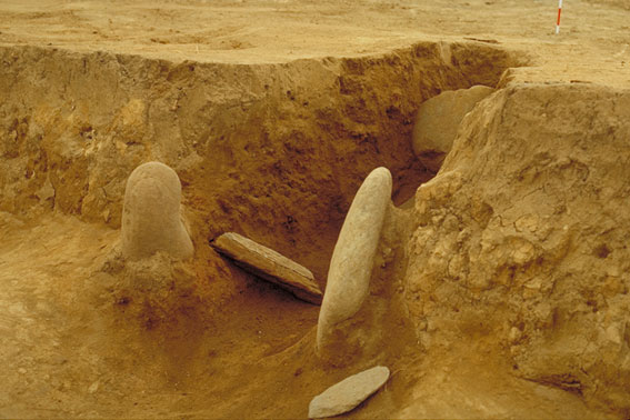 カマドの両袖には、細長い礫が設置されており、煙道部には大きな河原石が投げ込まれた状態で検出されました。