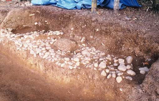 石室の石は抜き取られ確認できず、石室内に敷かれた円礫のみ確認できました。