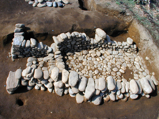 掘り下げの完了した石室。羨道部と玄室で構成されます。残念ながら、奥壁は、隣の畑にかかってしまい、確認することができませんでした。あと30cm位だったのに・・・・。