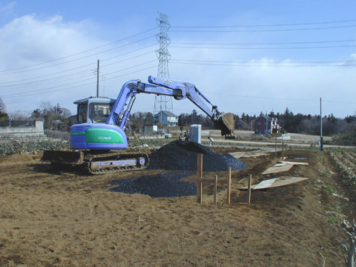 今回の調査は、個人住宅の建設に先立つもののため、埋戻し後、家を建てても傾いてしまっては大変ですので、砕石を敷いて重機で地盤を固めました。