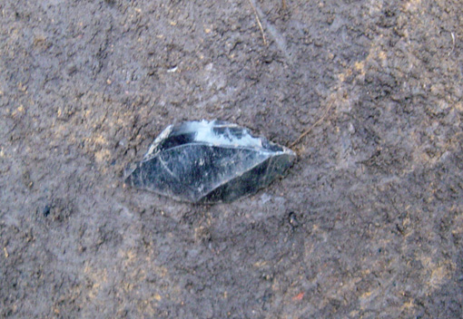 第1号住居跡の覆土中より出土した、旧石器時代のナイフ形石器。黒曜石製。