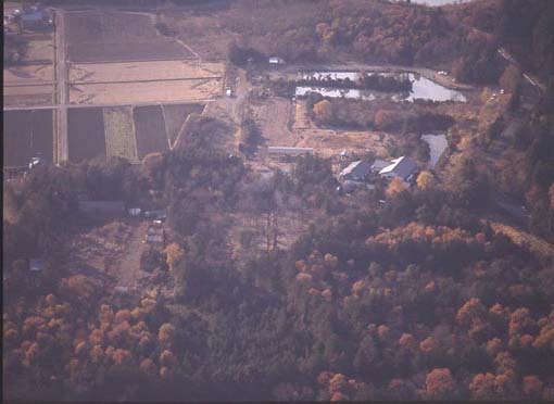 中央の林の中に縦方向に見えるのが東西方向の第5トレンチ。