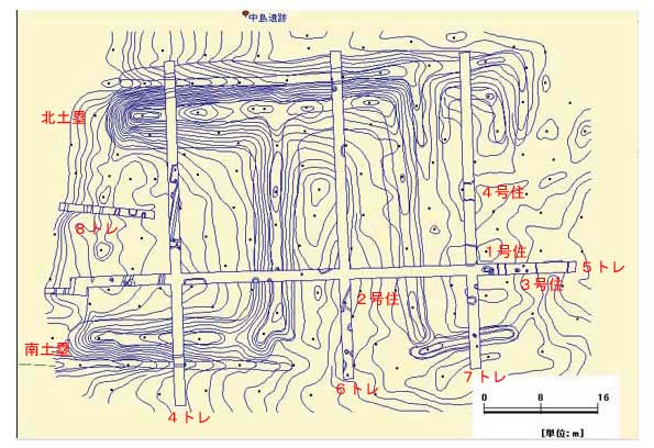 B中島遺跡(谷縁館跡)地形測量図(図面上:北)