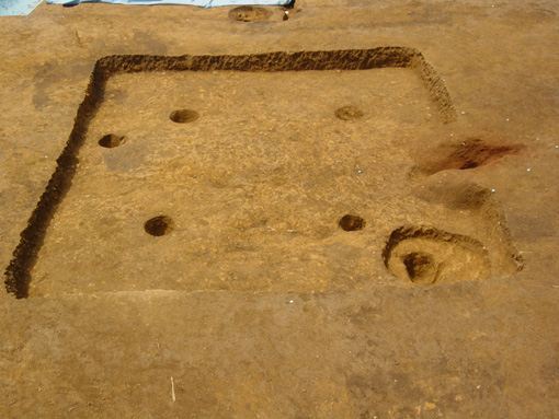 壁の下の溝はありませんが、柱穴4本と、カマド脇には貯蔵穴が掘られています。