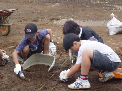 引率してきた保護者の方もいつもまにか参加しています。この中から、午前中の短い時間でしたが、将来の考古ボーイが生まれるといいのですが・・・。