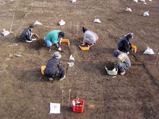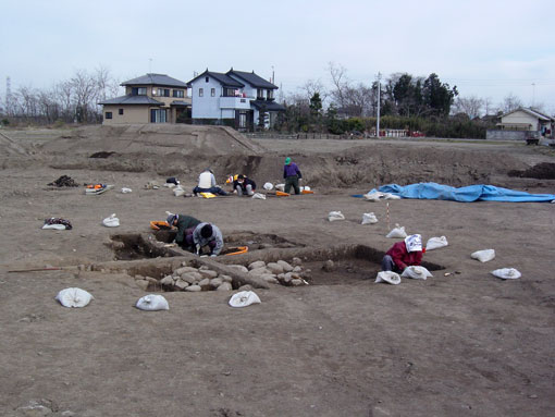 | 新田裏遺跡第3次発掘調査(1/3ページ) 調査地区:熊谷市上新田地内 調査面積:約400u 調査期間:平成16年1月15日〜2月6日 調査機関:江南町遺跡調査会 調査原因:砂利採取 |