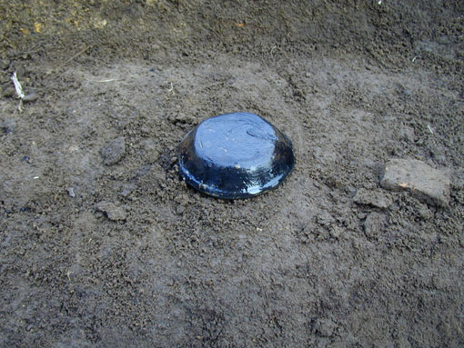 埋没谷から出土した、ほぼ完形のかわらけ。