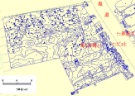 D第1調査地点全体測量図。 (遺跡GIS画面を加工して出力) 道路の東側に写っている調査区は1997年調査の中島遺跡第1次調査地点。 |