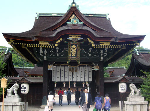 後西天皇御宸筆の『天満宮』の勃額が掲げてあります。豊富な彫刻の中に日月星があることから三光門の名があります。桜門と同様に、左脇には梅紋の、右脇には松の描かれた提灯が下げられています。