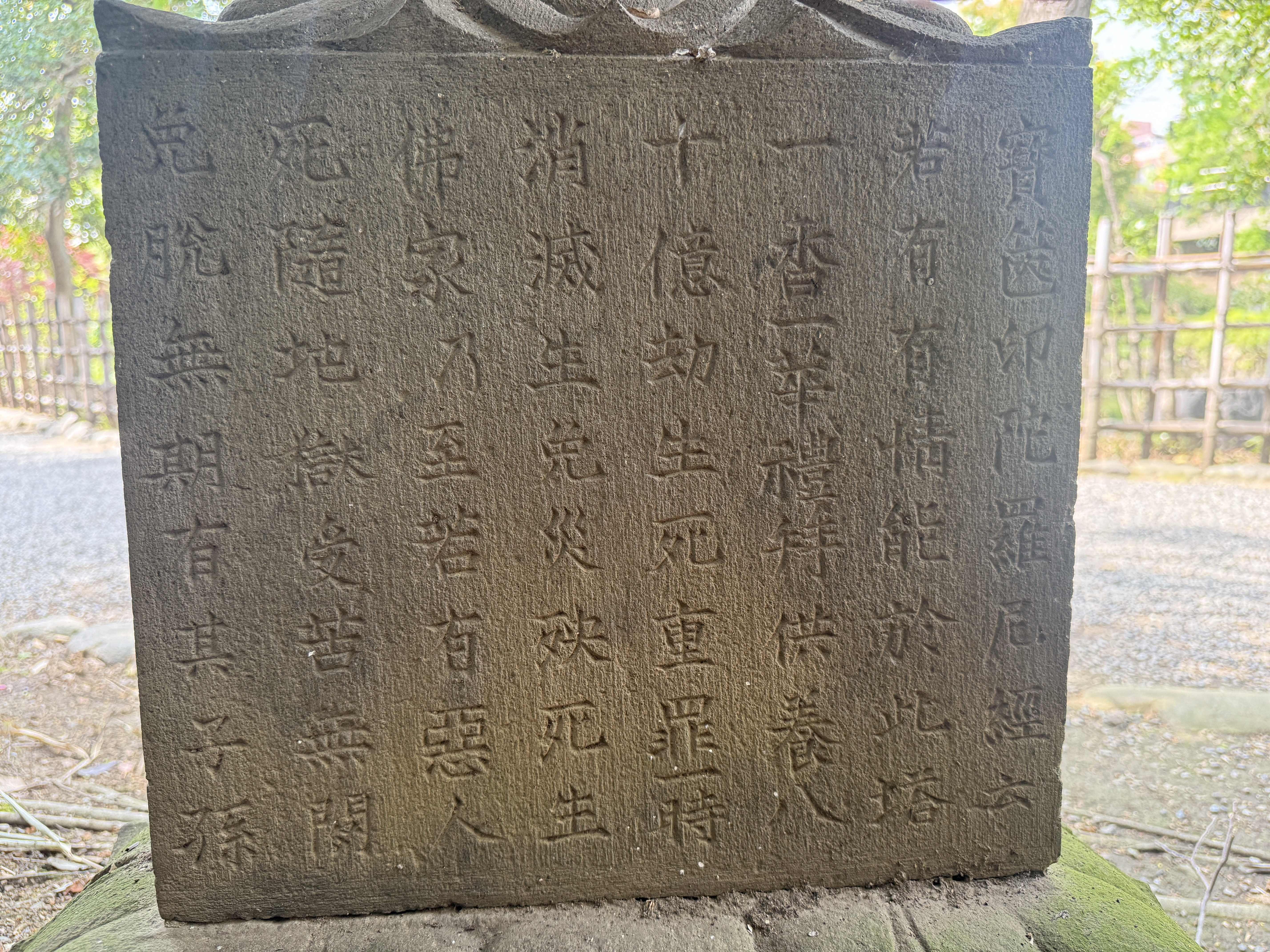施主は、梅澤又右衛門・梅澤勘右衛門。塔身の四面には梵字が彫られています。