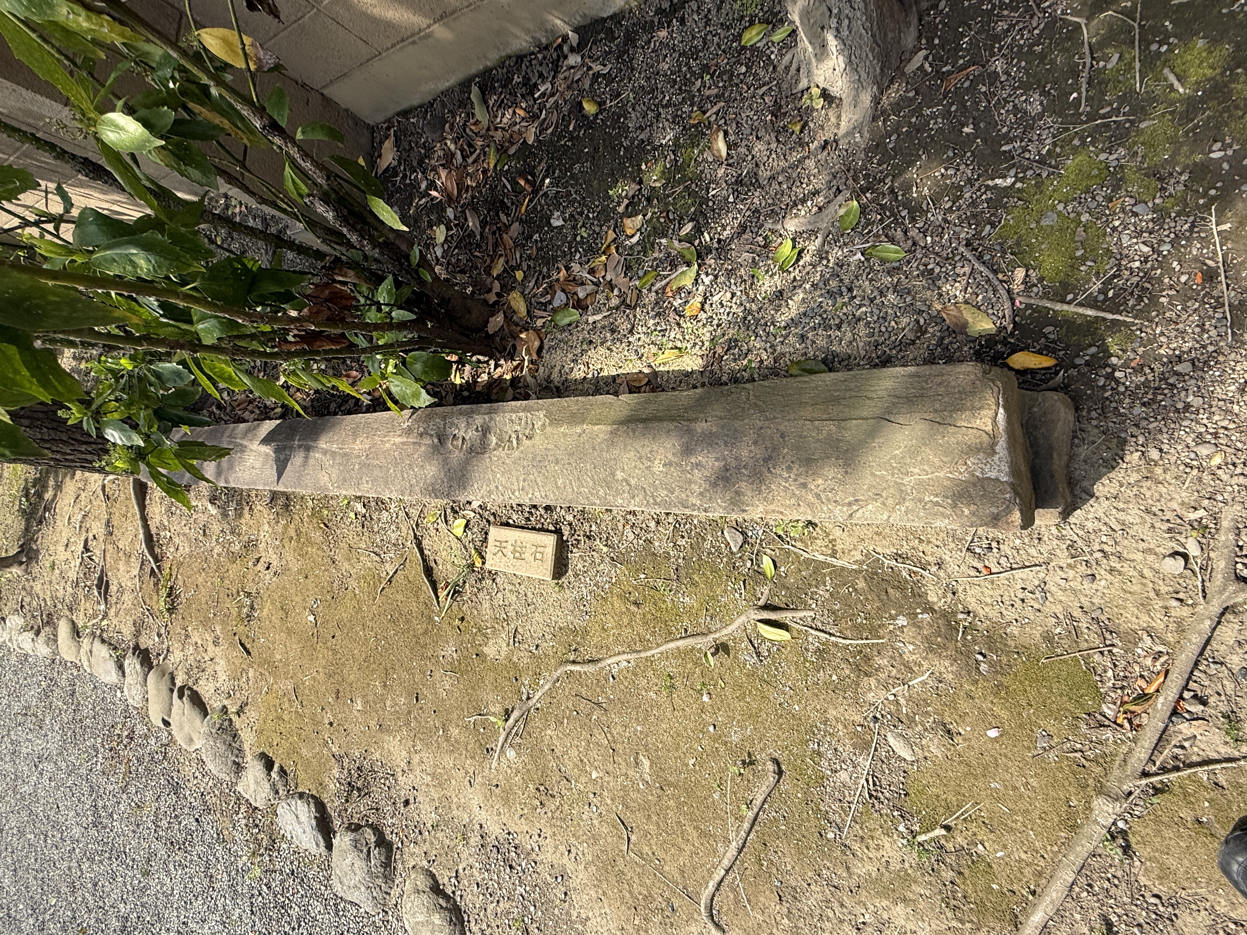 大意は、「笄石(天柱石)は、その形がその形に似ていることから名付けられた。秀吉の朝鮮出兵の際に持ち帰ったもので、大阪城の秀吉に献上され、落城の際家康が松平忠明に守らせ、以後その子孫はこの2石とともに転封し、最後は忍城ヘ移った。明治4年廃藩置県の際、城主は、竹井湛如にこれを譲与した。笄石は、元は1つの石であったが、桑名から忍へ移動の際5つに折れてしまった」と記されています。