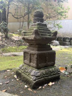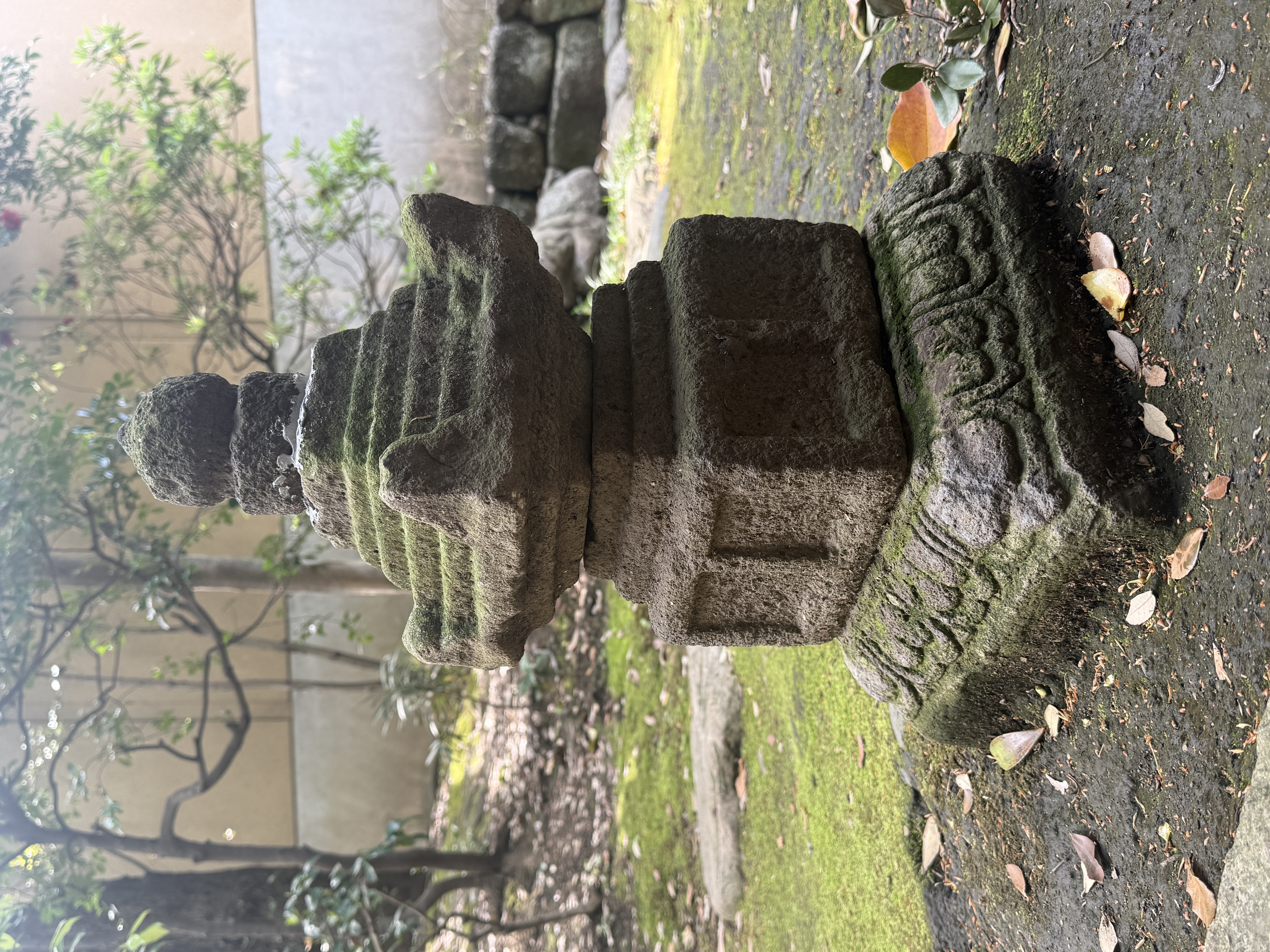 上端の宝珠は近世のもの。笠の下に基礎と反花座がきており、塔身を欠いています。