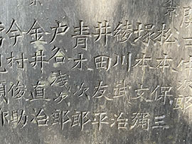 妻沼歓喜院境内に建てられている、新井周吉・河合鋠太郎頌徳碑を紹介します。 新井周吉は、入間郡高麗村に生まれ、17歳の時埼玉県立中等師範学校に入り、卒業後は各地の小学校長となり、その後、教育時論記者となり、各地を訪れ、教育を論議しました。 明治21年には、弥藤吾地内に妻沼他8箇村による幡羅高等小学が設置されると初代校長となりました。学校では、忠孝・謹倹による独特の校訓を定め、洗心室を設けて武士道を鼓舞し、女子部を設置し学科と技芸を教え、同窓会を創立して現在に通じる社会教育の実践を試みました。 著書に『教育小説』明治19年:鳴東館、『不思議弁妾』明治21年:盛春堂などあり。 河合鋠太郎は、文久3年川越市に生まれ、埼玉県立中等師範学校に学び、明治17年に渡米し美術を学びました。帰国後は教育者として、坂戸・幡羅・生越の各小学校を歴任し、明治31年に、新井周吉の推挙により、幡羅高等小学校第2代校長に就任しています。 この碑は、昭和4年3月に、子弟により建てられたもので、撰文は石坂養平、書は舞原譔一です。碑の裏面には、子弟1,035名の名前が刻まれており、その中には、綾川武治、井田友平の名も刻まれています。 碑文には「幡羅高等小学校は規模素より大ならざるも、学績の優良なる地方小学校の模範として名声四隣に籍甚す (中略) 両先生の指導誘掖宜しきの致す所、大我井の新緑愈濃く、利根川の水流淙々として碧きが如く、遺徳は永遠に盡きざるべし」と刻まれています。