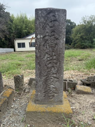 市内上奈良妙音寺門前に建てられている石橋供養塔。 総高102p、安山岩製。 天保3年(1832)に村役人壇中により造立されたもので左側面に「訪印本賢代 施主 石坂藤兵衛」と刻まれています。 妙音寺南側に農業用水のさすなべ排水路が流れており、この水路に架かっていた石橋を供養したものと推測されます。