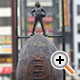 平成8年4月設置。大きなラグビーボールの上に少年が立つ。背面にゴールポスト。 |