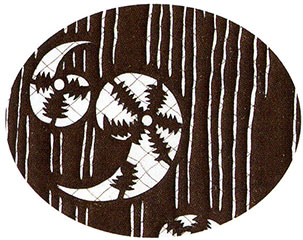 刃先を波状や菱形にした小刀で、型紙を押し突いて彫る。細かい文様を一突きで彫りぬくことができる技法。 |