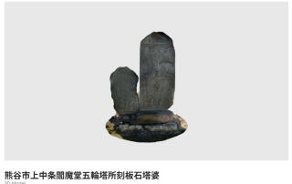 肥塚氏は熊谷氏の祖となった直季の弟直長が肥塚に住んで肥塚氏の始祖となり、その後も在住していたと考えられています。この板石塔婆は、肥塚氏の太郎光長と八郎盛直の供養塔2基によって構成されています。太郎の板石塔婆は年号が康元2年(1257)、種子は阿弥陀如来であり、八郎の板石塔婆は年号が応安8年(1375)、種子は地蔵菩薩です。