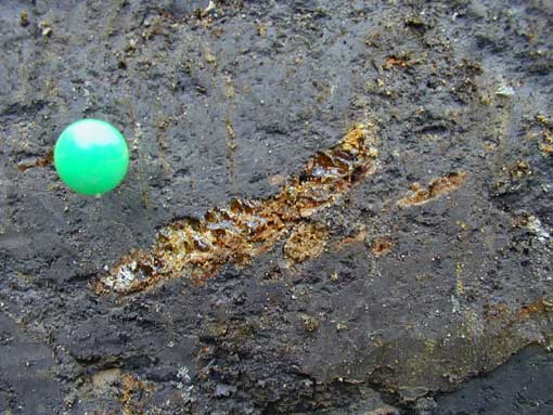 断層東面琥珀出土状況