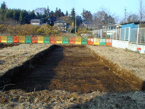調査地点は、丸山遺跡の範囲内であるため、表土を剥いだ時点で、当教育委員会で、遺構の有無を確認させていただきました。