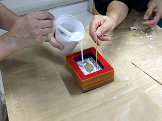 2-6.剥離財が乾いたら、型取り用シリコンを、前回と同じ要領で流し込みます。 |